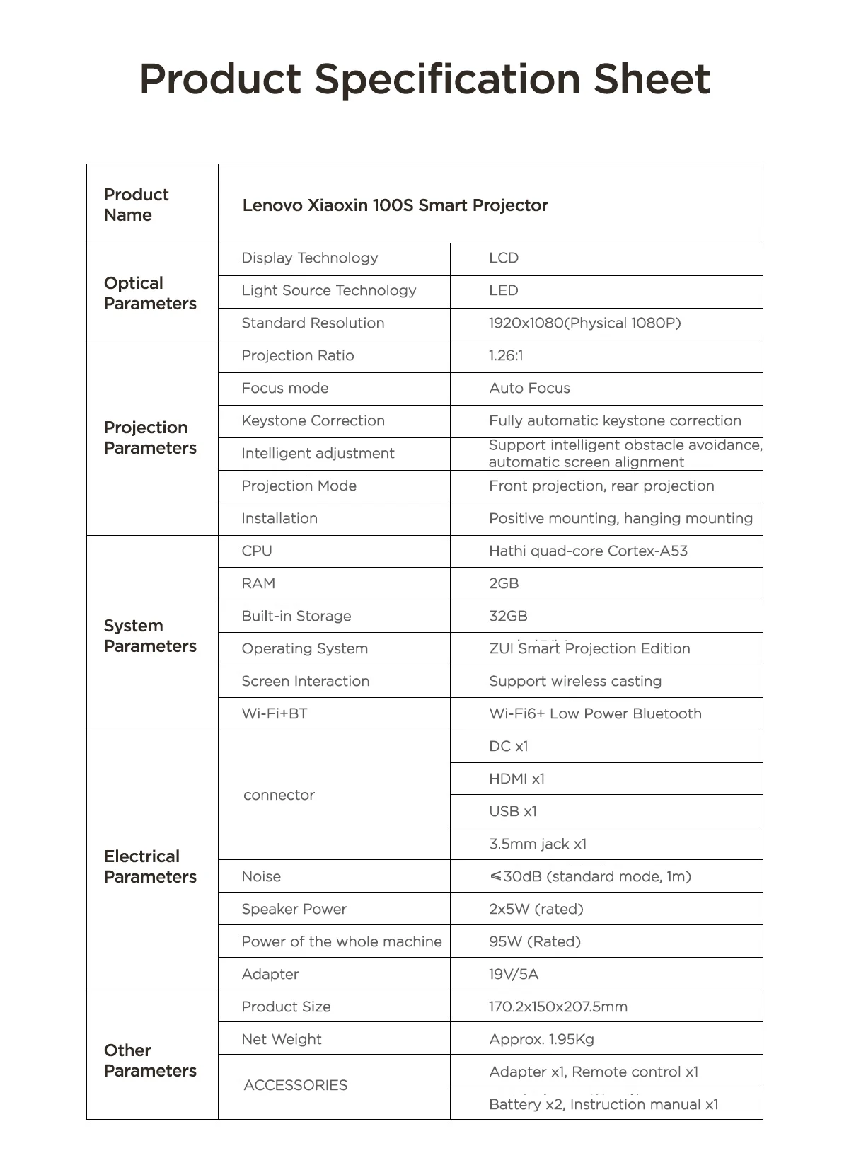 Lenovo Full HD 1080P Portable WIFI Android Home Projector Xiaoxin 100S 2+32G Big Memory 6D Keystone LCD Movie Projector