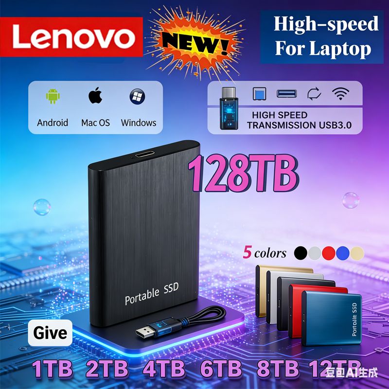 Lenovo Hot Sales USB SSD High-speed 2TB SSD 8TB External Hard Drive Mass Storage USB 3.0 Interface Storage for Laptops Computer