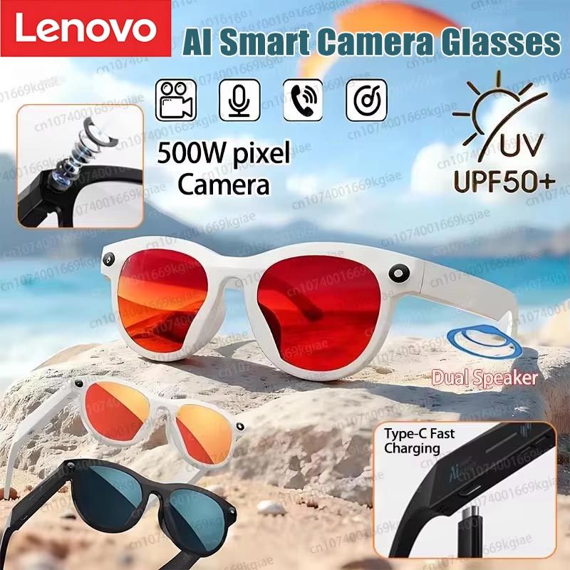 Lenovo New 500W Pixel Smart Glasses AI Cam Recognition Photography Video Record Bluetooth Call Music Playback Voice Wake Up New
