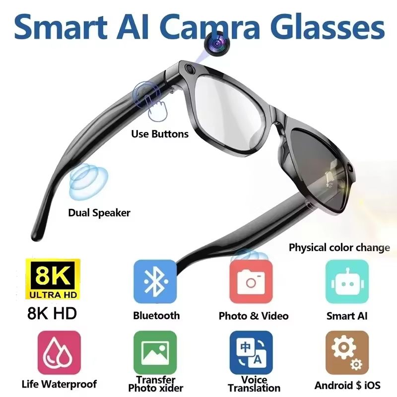 Step into the future with the AI Smart Camera Glasses, a groundbreaking device that combines the convenience of smart glasses with the power of advanced technology. These glasses are not just a fashion statement; they are a tool that enhances your daily life. With an 8K HD camera, you can capture crystal-clear images and videos, ensuring that every moment is preserved in stunning detail. The Bluetooth 5.3 connectivity provides a stable and reliable connection, allowing you to seamlessly make calls, use voice assistants, and enjoy music without any interruptions.