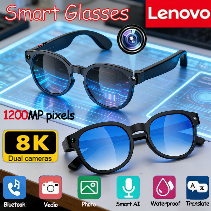 Lenovo New 8K AI Smart Glasses AI Translation 1200MP HD Camera Shooting Image Bluetooth Call Recording Music Smart Sunglasses
