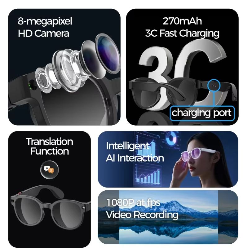 Introducing our all-new AI Smart Glasses, the ultimate fusion of fashion and cutting-edge technology. Designed for modern life, these glasses combine HD camera recording, real-time AI translation, hands-free calls, and music playback into a sleek, wearable design. Whether you’re traveling, working, or exploring, they keep you connected, productive, and stylish—all without reaching for your phone.