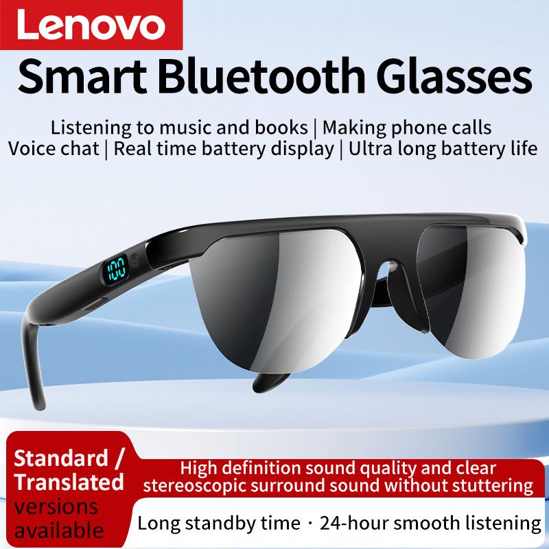 Lenovo Smart Bluetooth Translation Sunglasses Open Ear Headphones with HD Stereo Sound Battery Display For Calls Music