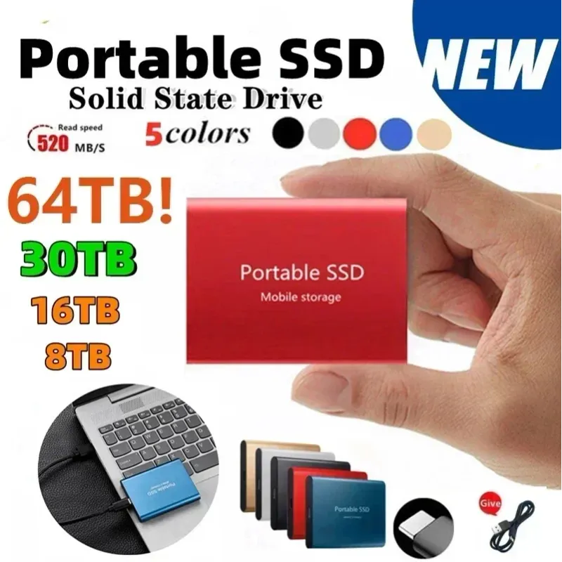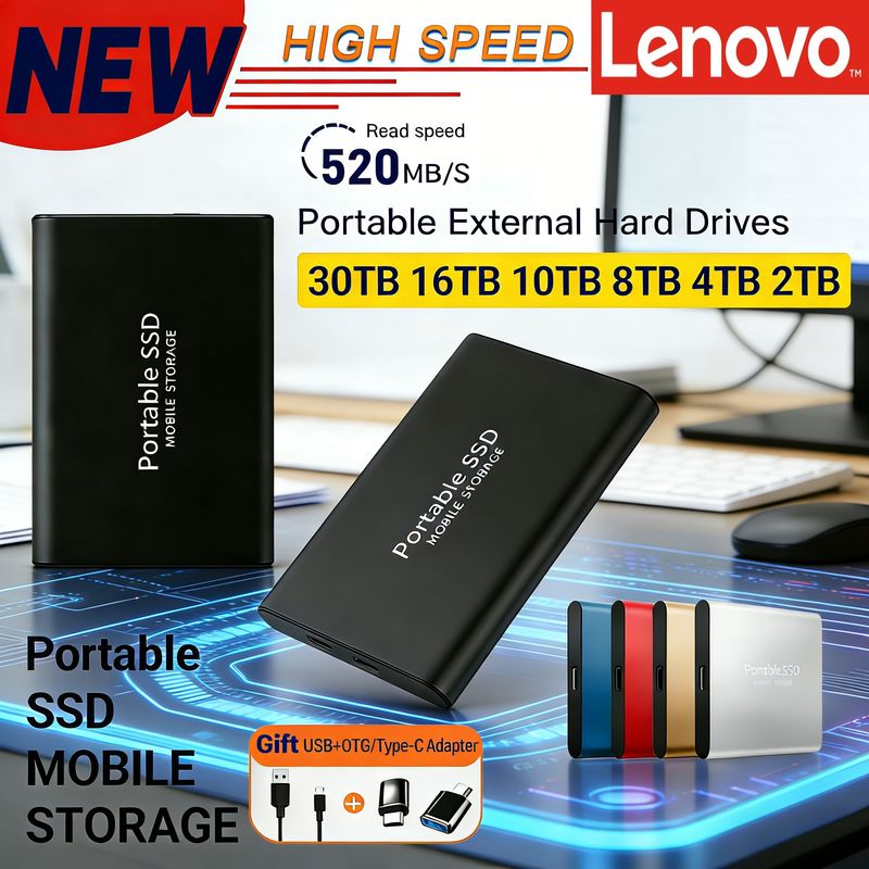 Lenovo T5 Hard Drive Portable SSD 256TB 128TB 64TB 10TB 2TB