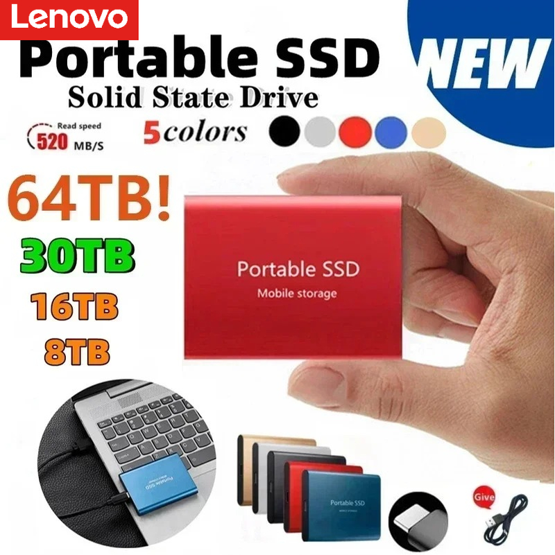 Lenovo T5 Original Portable External 256TB SSD USB 3.1 Mini Solid State Drive High-Speed 2TB Memory Flash Disk for PC Laptop Mac