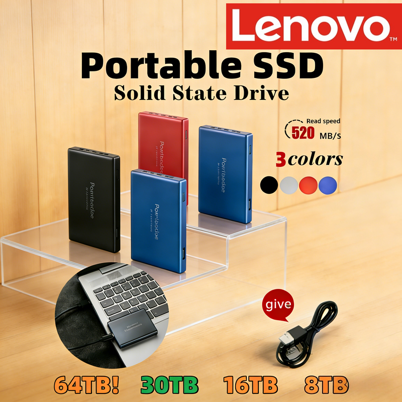 Lenovo T5 Original Portable External 128TB SSD Mini Solid State Drive High-Speed 2TB USB 3.1 Memory Flash Disk for PC Laptop Mac