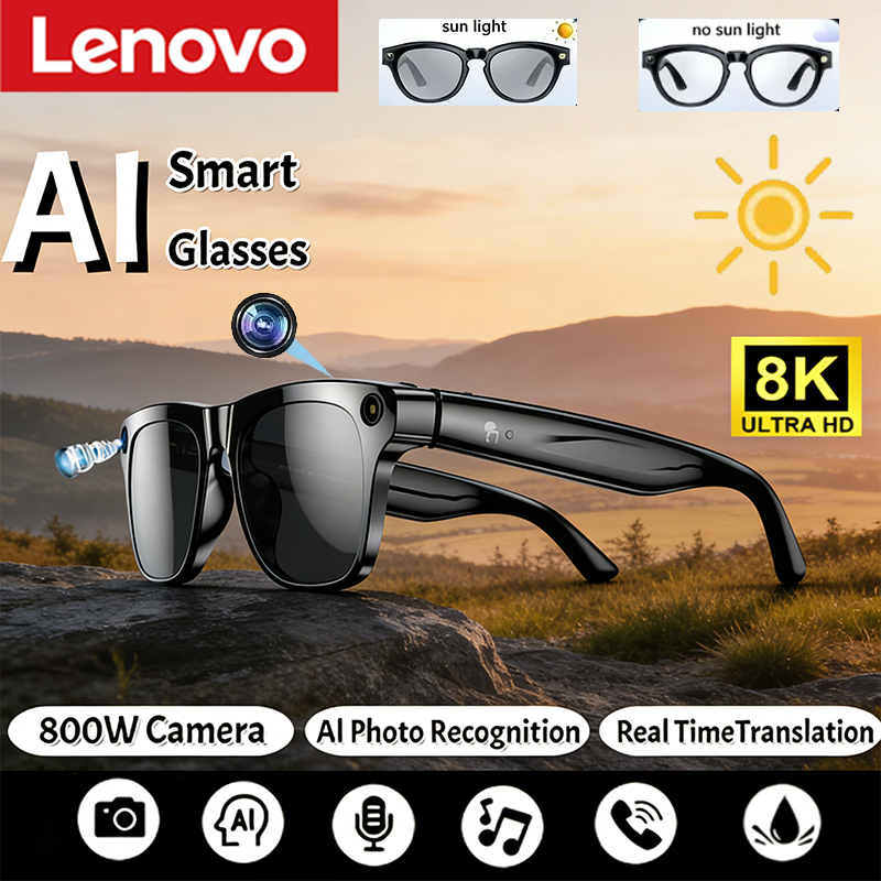 Lenvo AI Glasses 8K 1200MP HD Camera Bluetooth Call Chat GPT Voice Assistant Music Player Translate Smart Sunglasses 2026