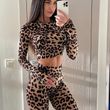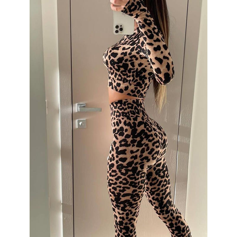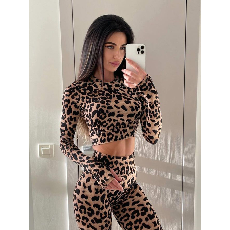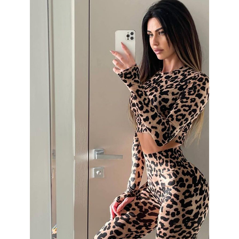 Leopard Printed Sets 2 Pieces Suits Women Fashion Streetwear Sheath Long Sleeves O-Neck (Tops+Pants) Bodycone Female Tracksuits