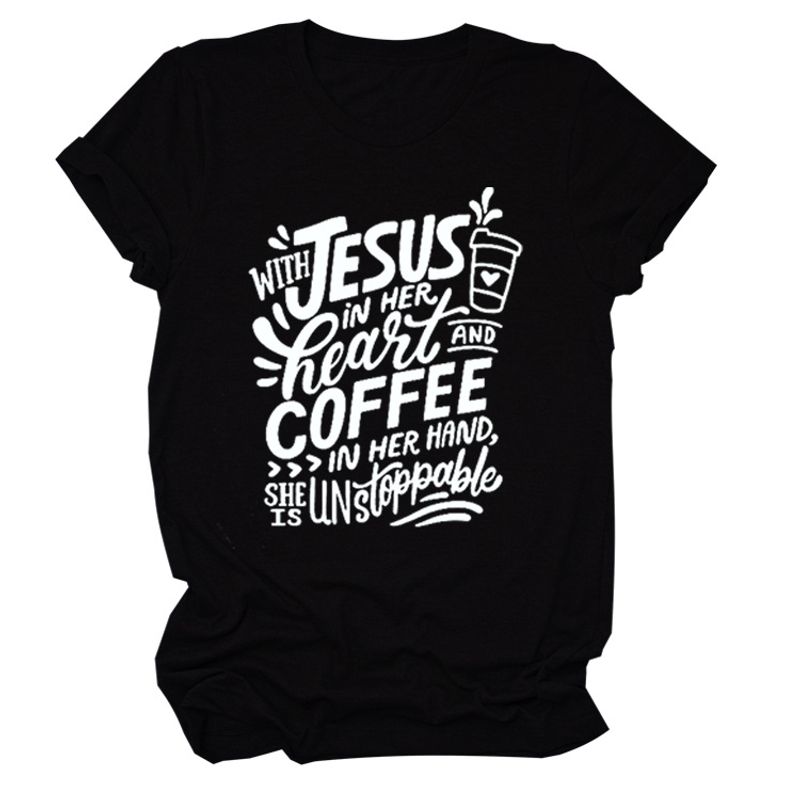 Letter Casual Loose Street Fashion Short Sleeve T-shirt Black White S
