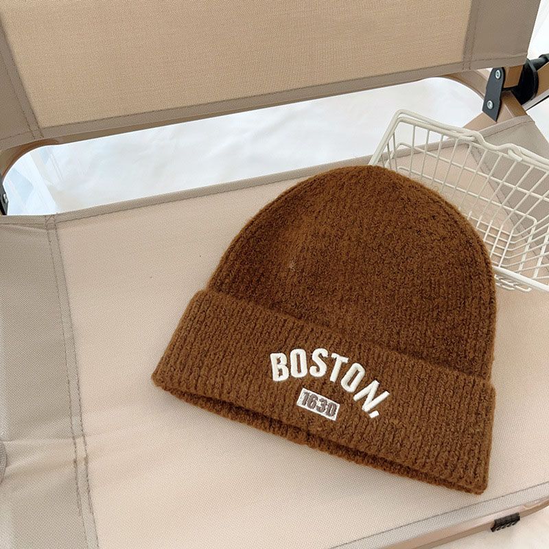 Letter Embroidered Kids Beanie Cap Winter Warm Knitted Wool Hat for Boy Girl Korean Ins Solid Color Children Skullcap 3-10Y