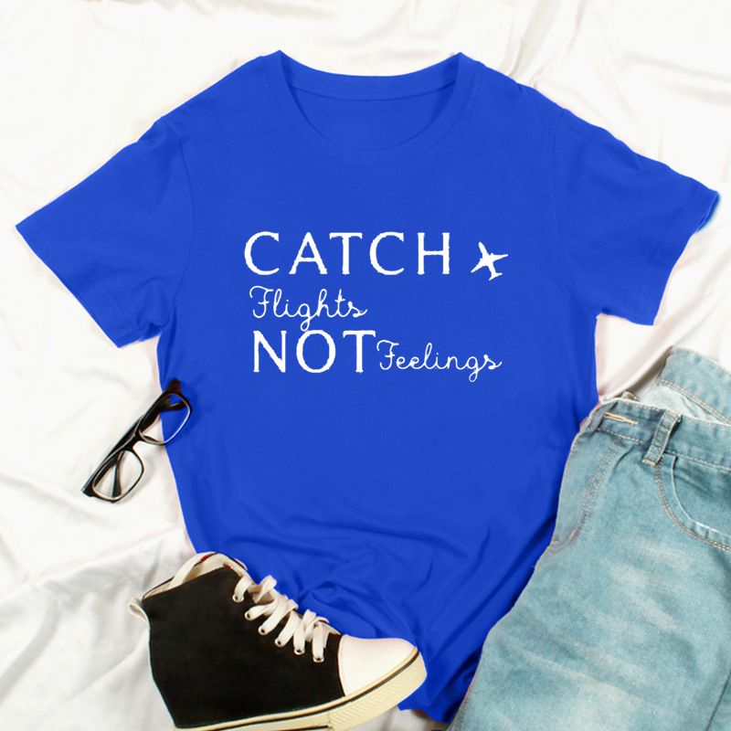 Letter Print Casual Short-sleeved T-shirt Blue 2XL