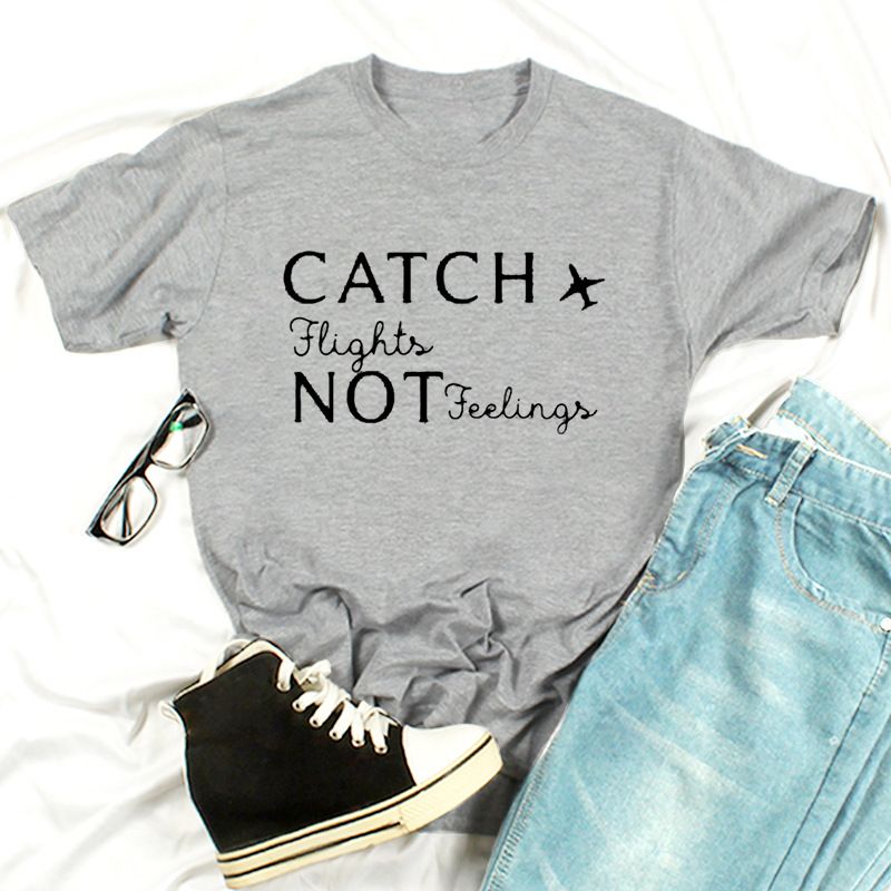 Letter Print Casual Short-sleeved T-shirt Grey L