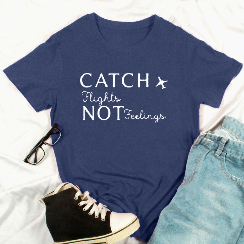 Letter Print Casual Short-sleeved T-shirt Navy Blue S