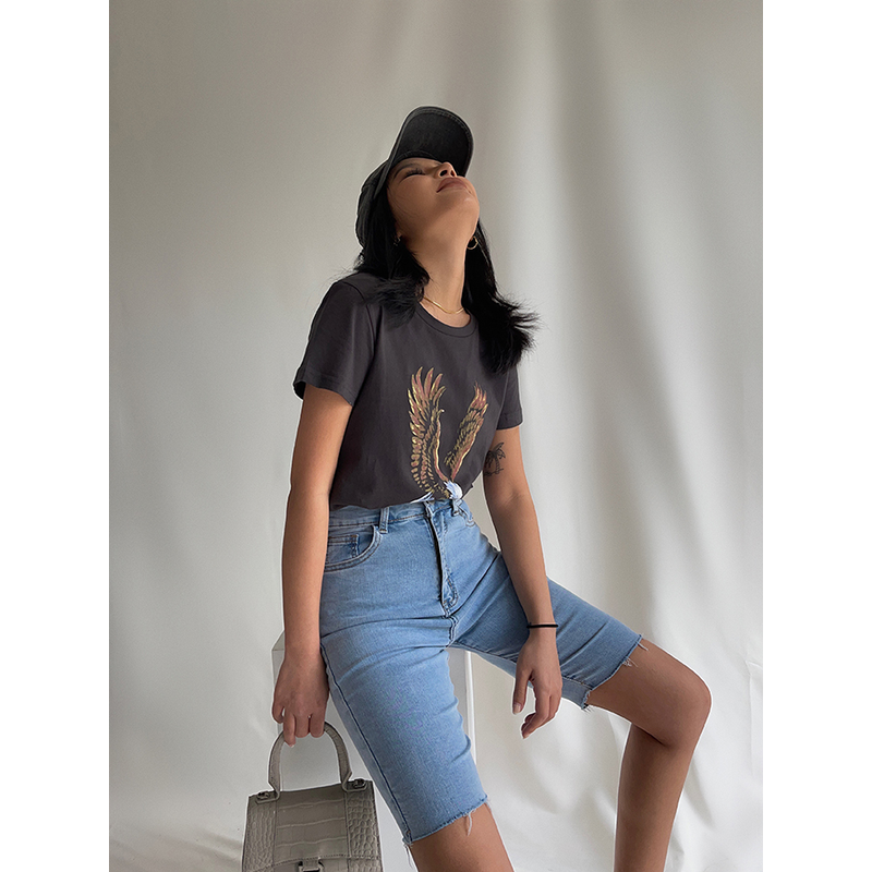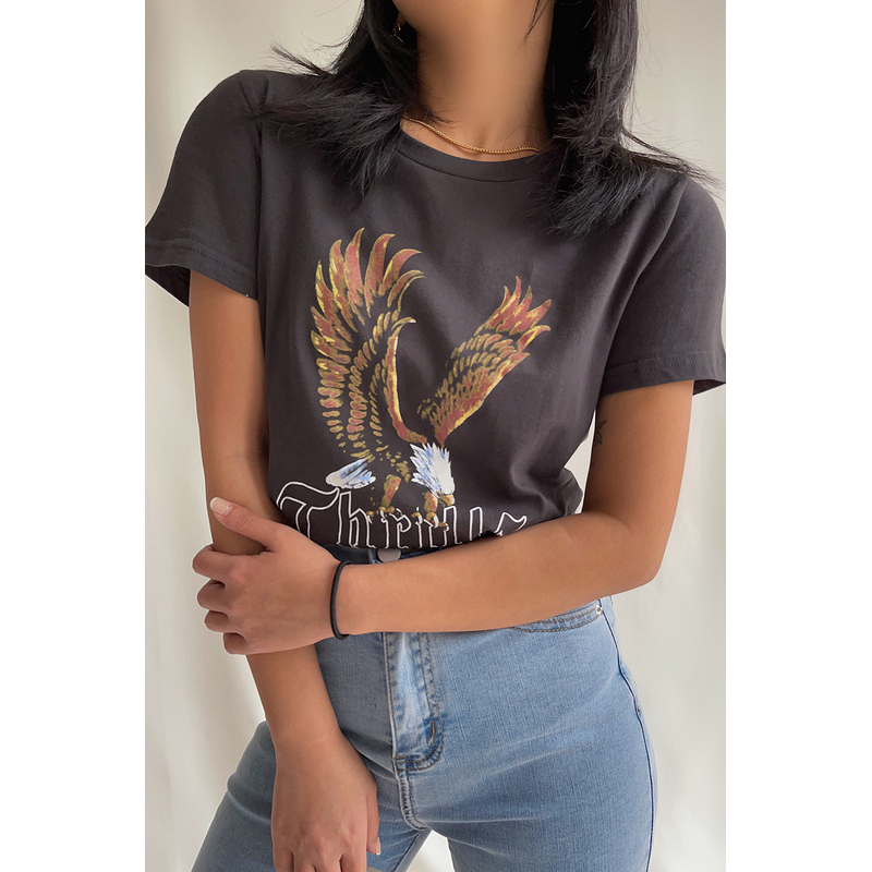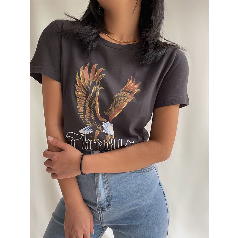 Letter Print T-shirt Loose Casual Jumping Short Sleeve Grey S