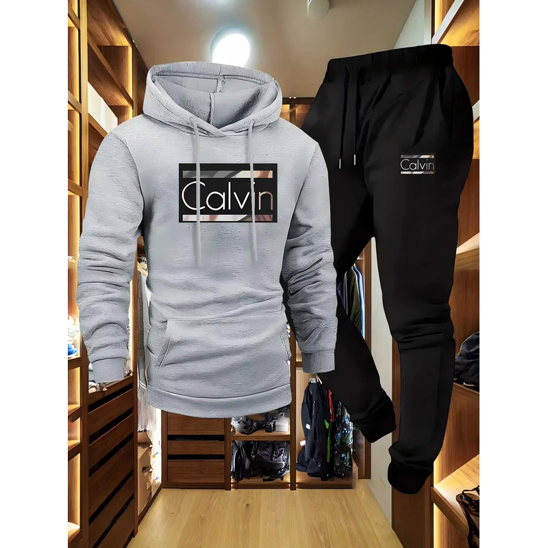Letter Print Trendy Hoodie and Loose Drawstring Pants Set, Casual Comfortable Breathable Sweatshirt with Kangaroo Pocket