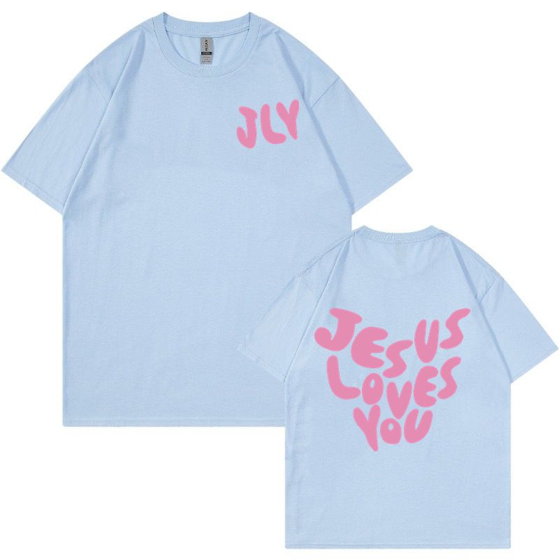 Letter Printing Personalized Design Short Sleeve Women Light Blue Model 1 3XL