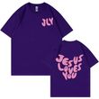 Letter Printing Personalized Design Short Sleeve Women Purple Style 1 L