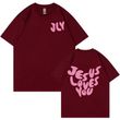 Letter Printing Personalized Design Short Sleeve Women Wine Red 1 3XL