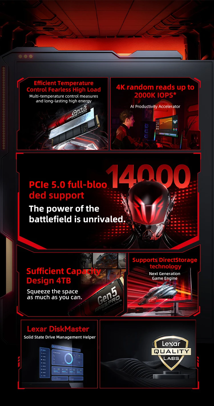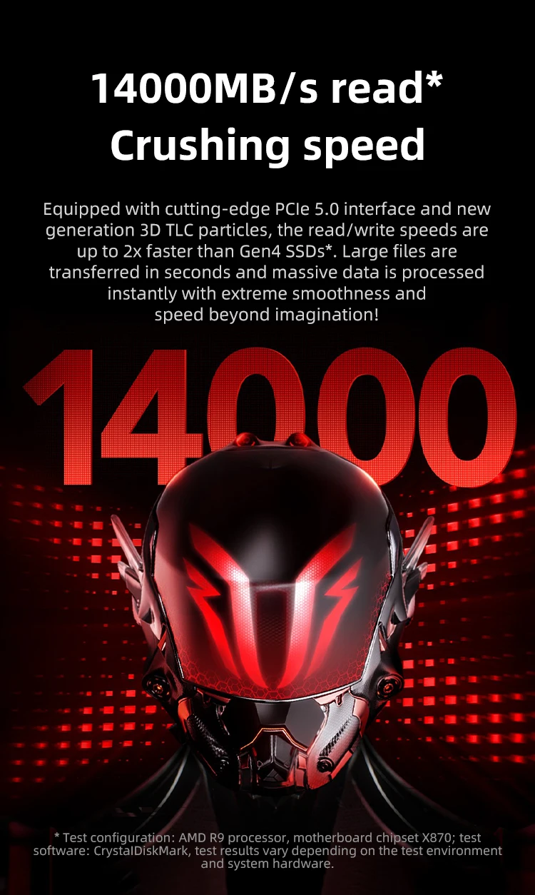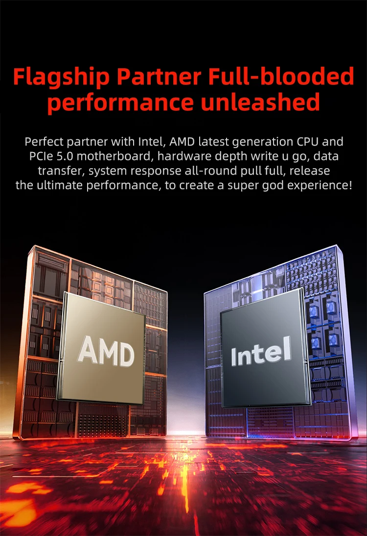 ● Perfectly paired with the latest generation of Intel and AMD CPUs and PCle 5.0 motherboards, the hardware deeply collaborates on data transfer and system response, unleashing the ultimate performance and creating a super god experience!