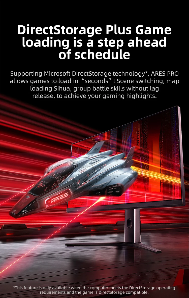 ● Supports Microsoft DirectStorage technology* ARES PRO makes game loading “start in seconds”! Scene switching, map loading smooth group battle skills without lag release, the achievement of your gaming highlights.