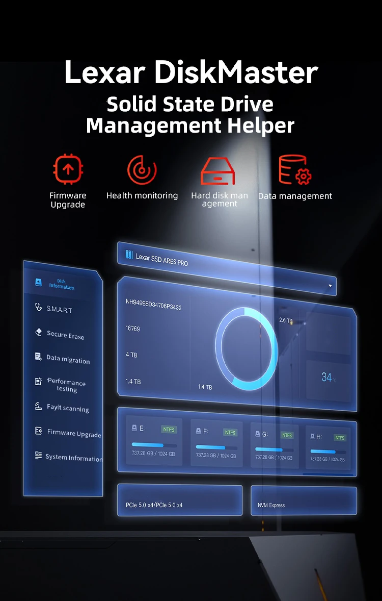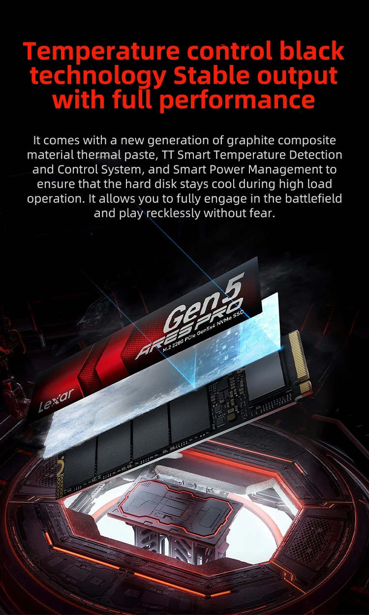 ● It comes with a new generation of graphite composite material thermal paste, equipped with TT intelligent temperature detection and control system, Smart Power Management to ensure that the hard disk maintains a low temperature during high load operation.