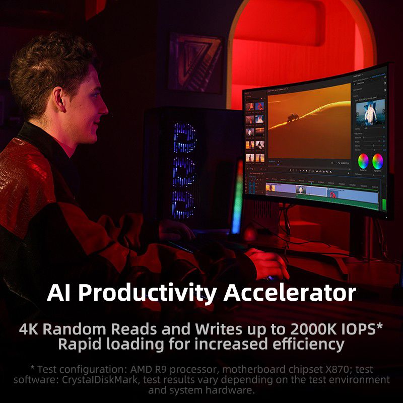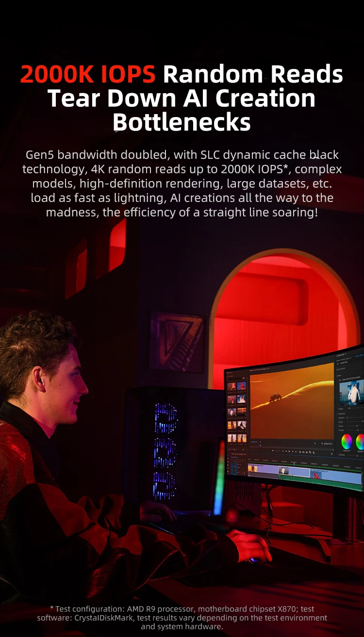 ● Gen5 bandwidth doubled, with SLC dynamic cache black technology, 4K random read up to 2000K IOPS*, complex models, high-definition rendering, large datasets, etc. load as fast as lightning AI creation all the way to the madness, the efficiency of a straight line soaring!