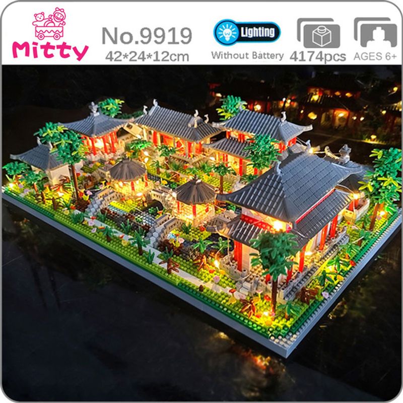 Lezi Architecture Ancient Pavilion Temple Tower Lake Garden Gate LED Light Model Mini Diamond Blocks Bricks Building Toy no Box