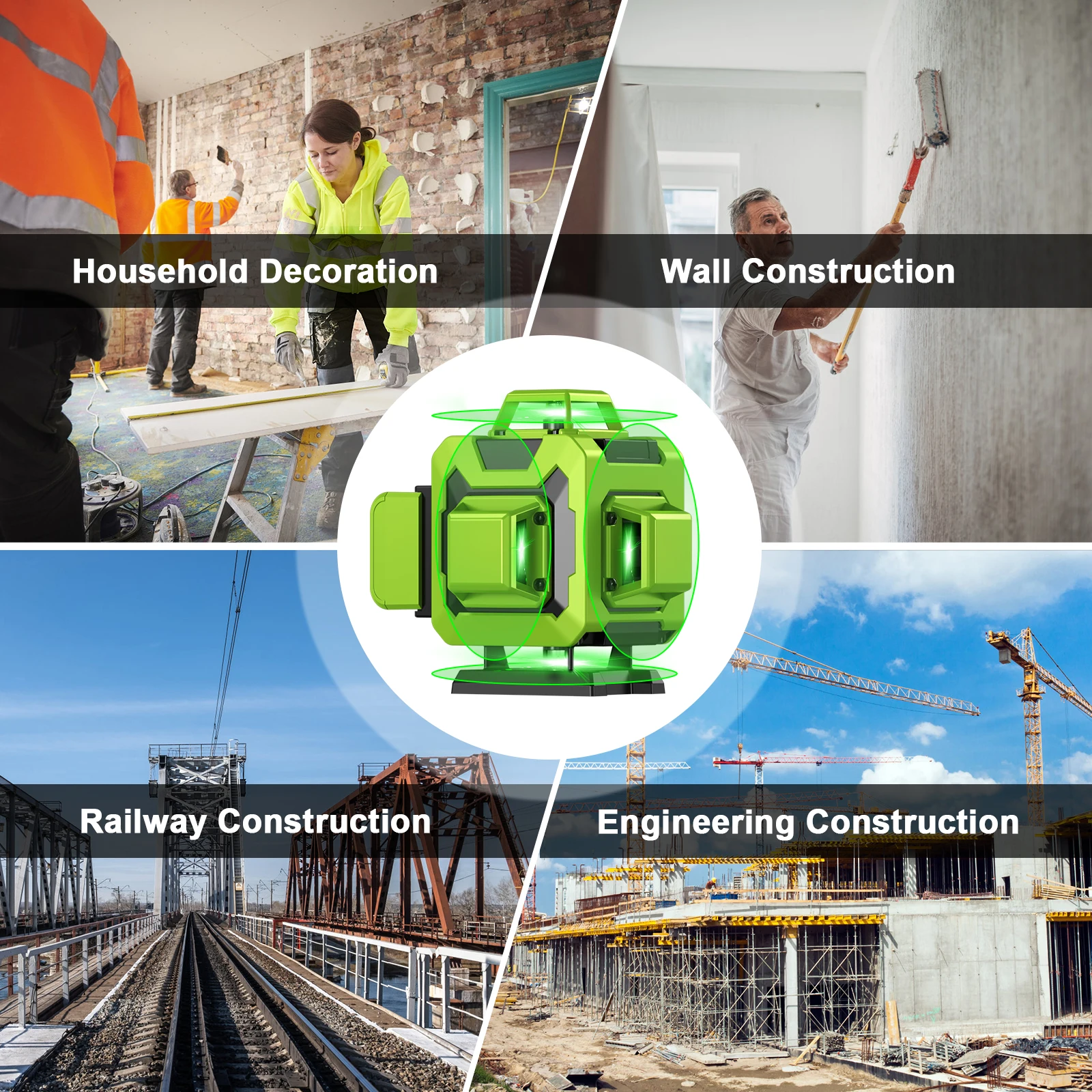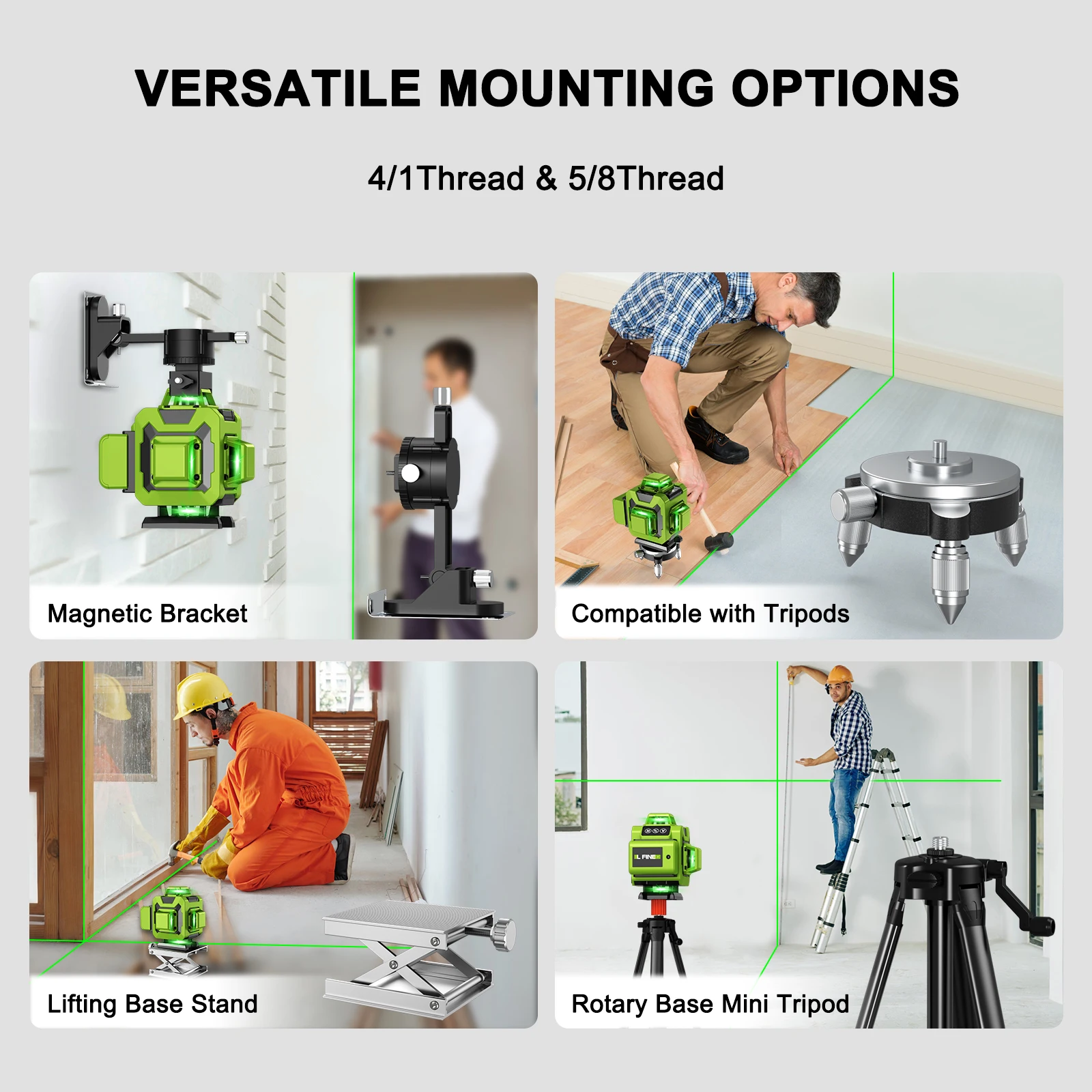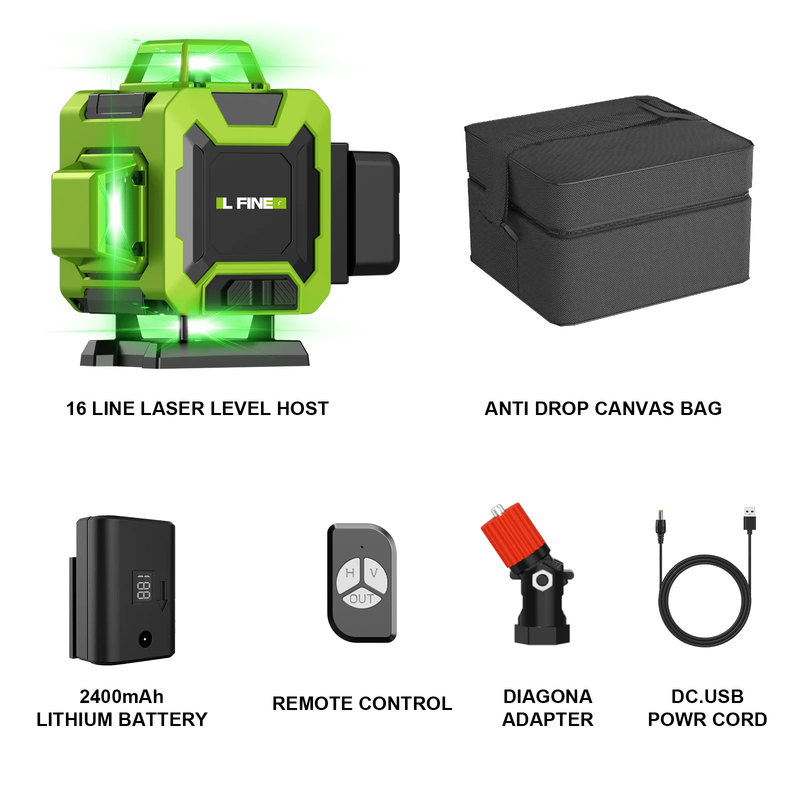 This comprehensive laser level kit from Lfine offers professional-grade performance and versatility for a wide range of DIY and construction projects. Featuring a powerful 4D green cross-line laser with 16 intersecting lines, this self-leveling tool provides accurate and precise guidance for tasks such as wall mounting, flooring, tiling, and more.