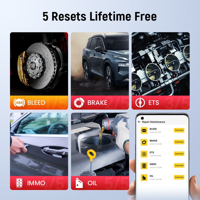 👍【ALL SYSTEMS DIAGNOSTIC + 5 Reset Free for 106 Car Brands】It can access all vehicle ECU systems and ECU information to facilitate the vehicle diagnoses such as Engine System,ABS,SRS etc. Bleed,Brake,Throttle,IMMO, Oil Reset lifetime free, no annual fee.