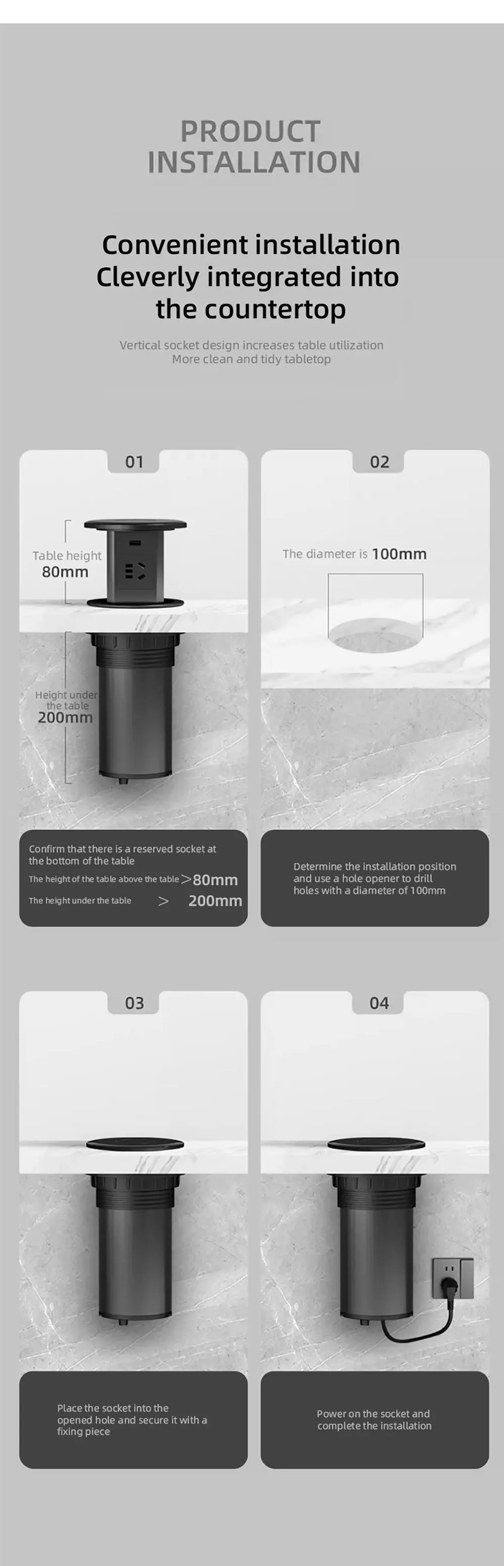 The plug style of the power cord for the socket can be selected by contacting customer service