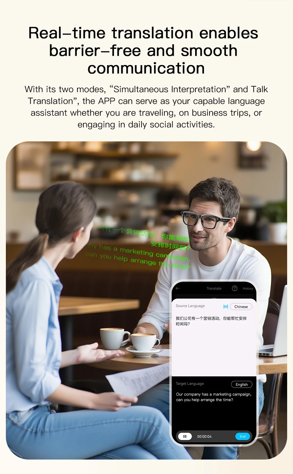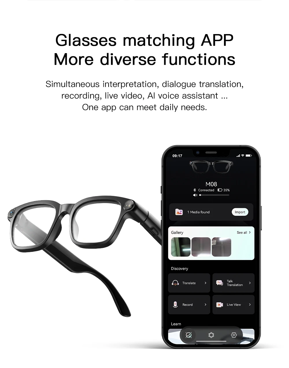 Note: Smart glasses cannot project information onto the lenses, and the pictures are for reference only.
