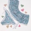 Light Blue Floral Pattern Strapless Off Shoulder Women Sexy Slit Bikini Set Swimwear Women Beach Bathing Swimsuit
