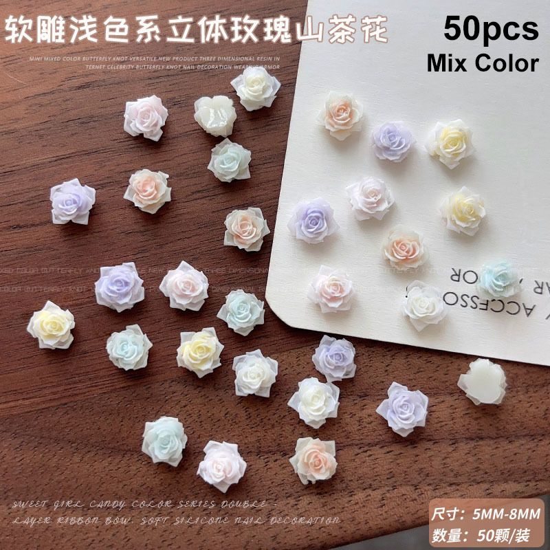 Light Gradient Colorful Resin Camellia Flowers Colorful Rose Nail Art Decorations DIY Carved Manicure Tool Accessories Wholesale