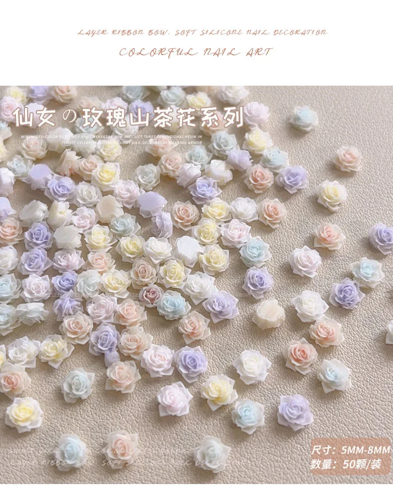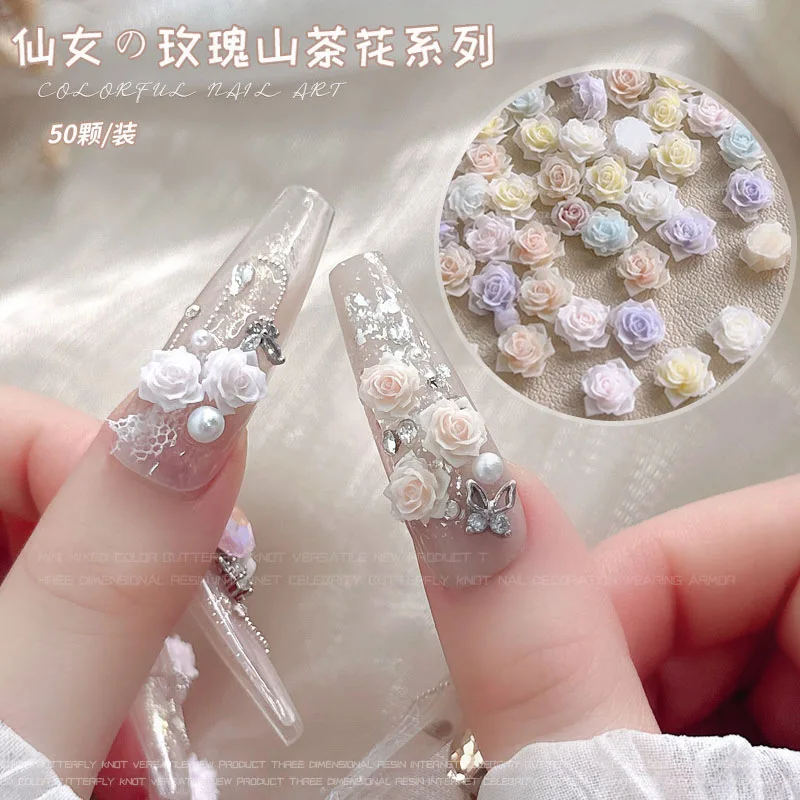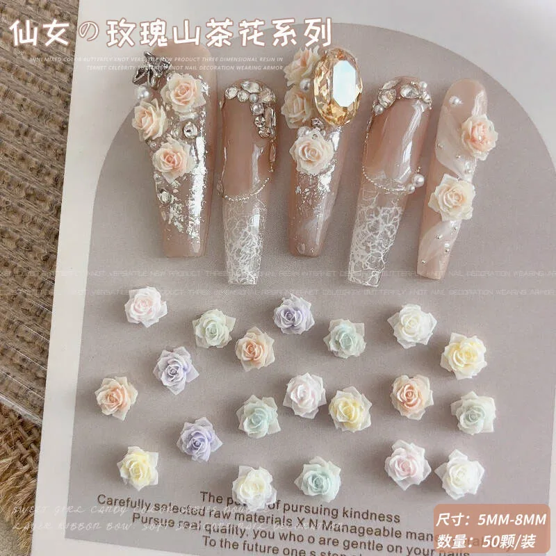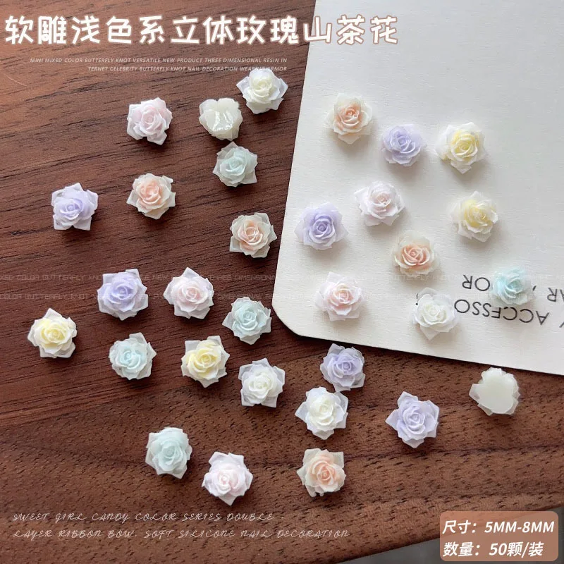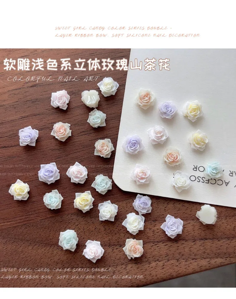 Light Gradient Colorful Resin Camellia Flowers Colorful Rose Nail Art Decorations DIY Carved Manicure Tool Accessories Wholesale