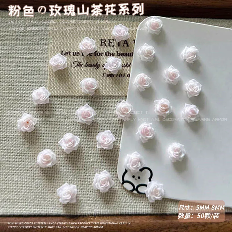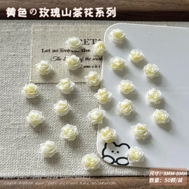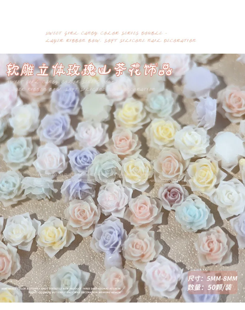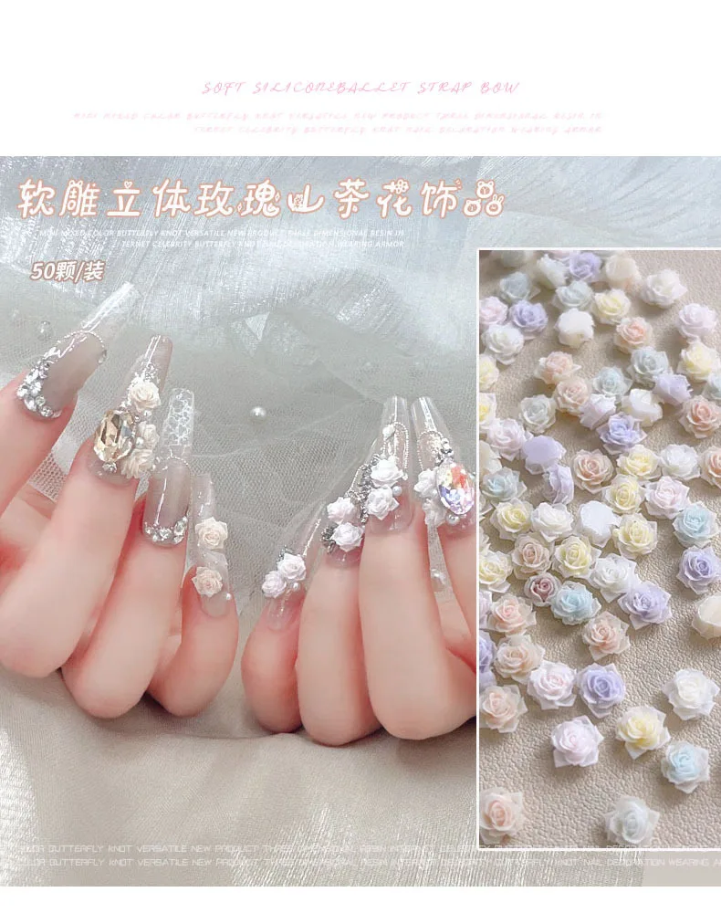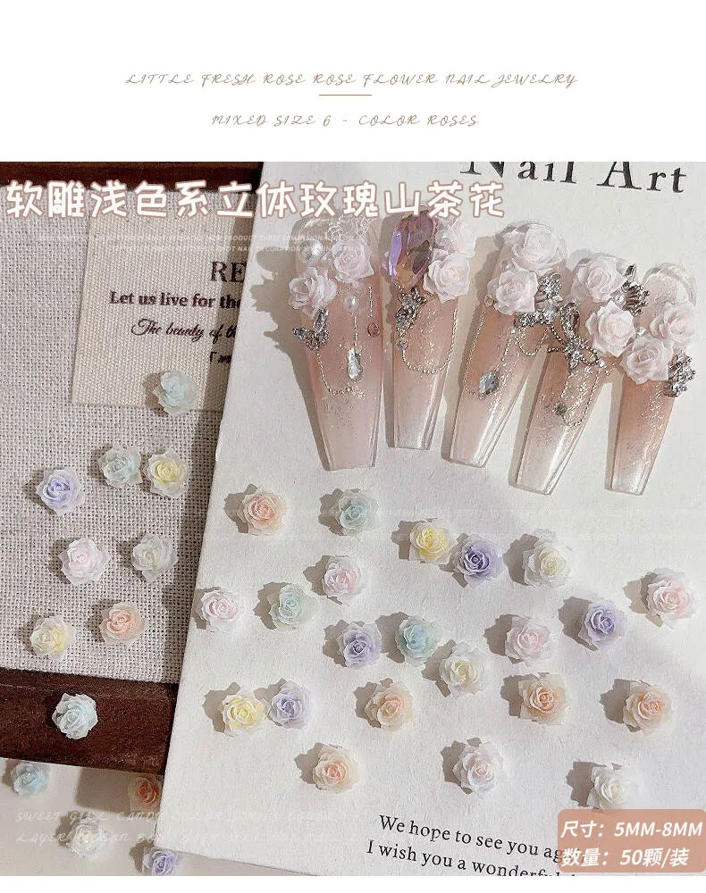 Light Gradient Colorful Resin Camellia Flowers Colorful Rose Nail Art Decorations DIY Carved Manicure Tool Accessories Wholesale
