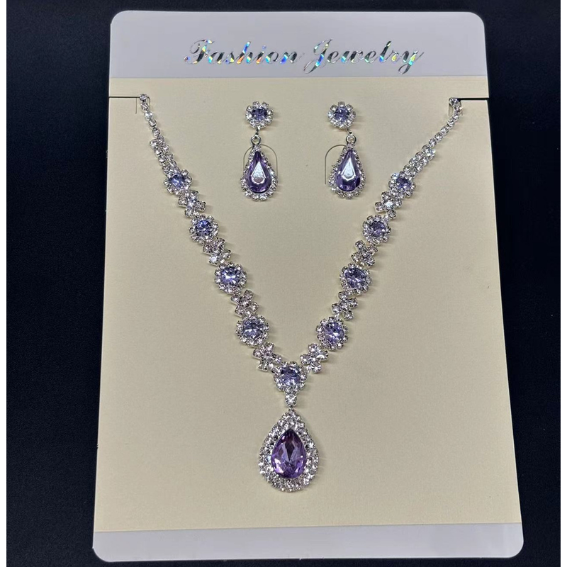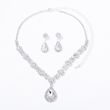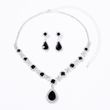Light Luxury Blue Crystal Full Diamond Water Drop Necklace Earrings Black