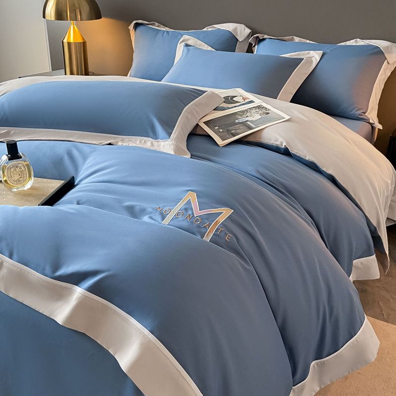 Light Luxury Brushed Four-piece Set Advanced Embroidery Cotton Bentley Blue 1.8m flat sheet