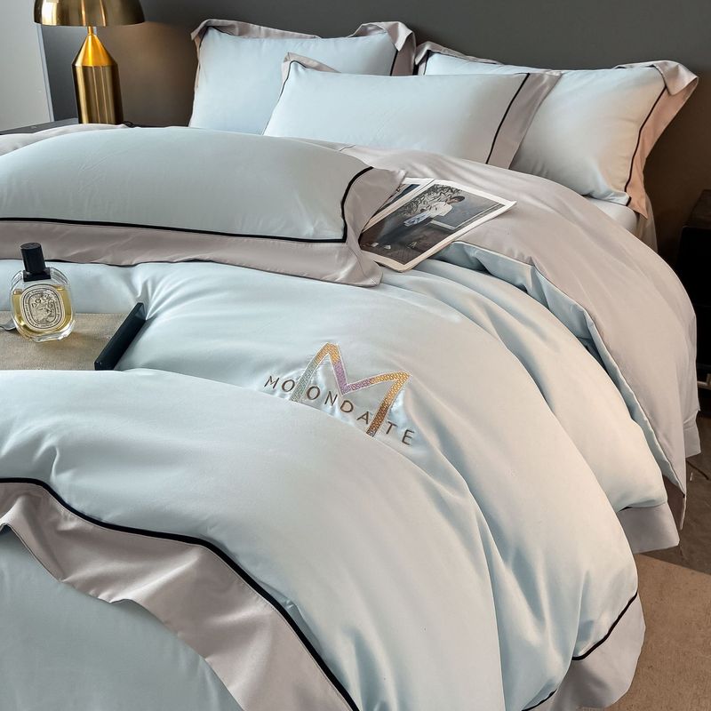 Light Luxury Brushed Four-piece Set Advanced Embroidery Cotton Blue 1.8m flat sheet