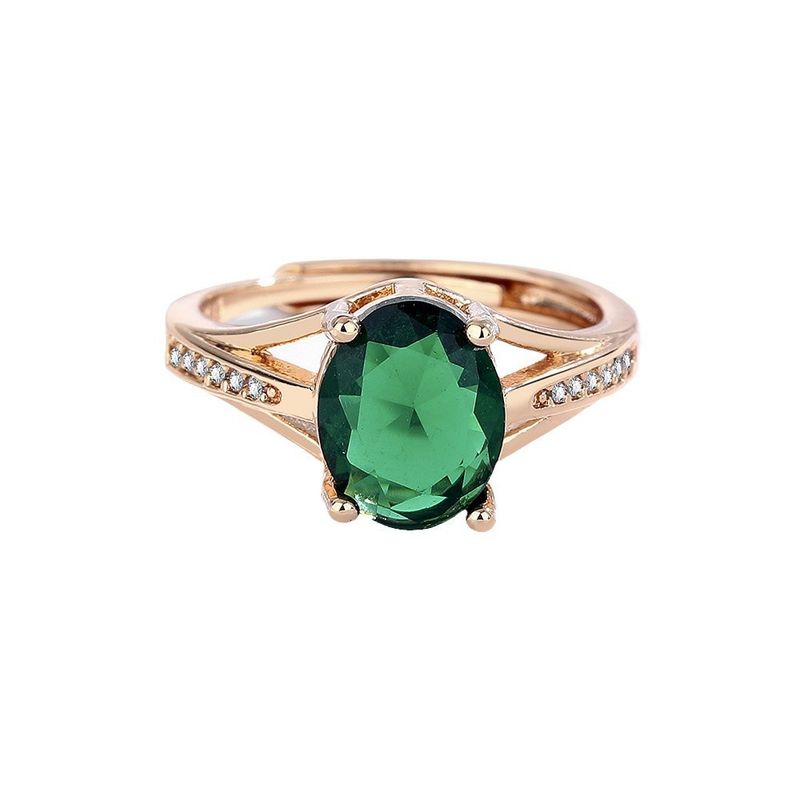 Light Luxury Champagne Gold Micro Inlaid Zircon Diamond Ring Gold Green
