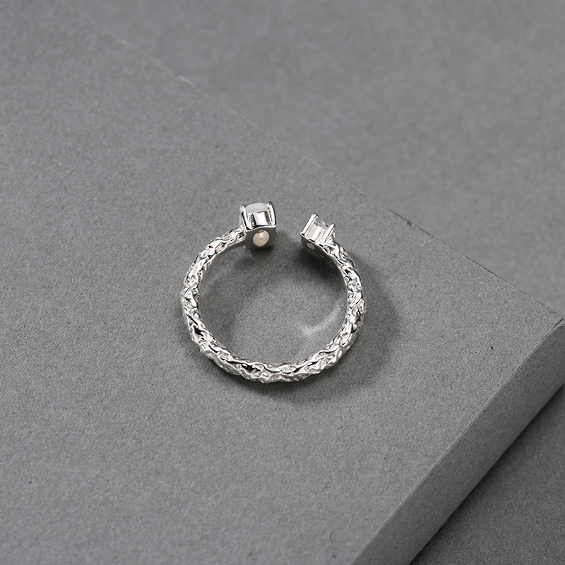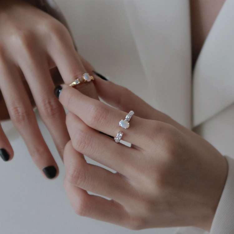 Light Luxury Cold Wind Opal Stone S925 Silver Ring Platinum