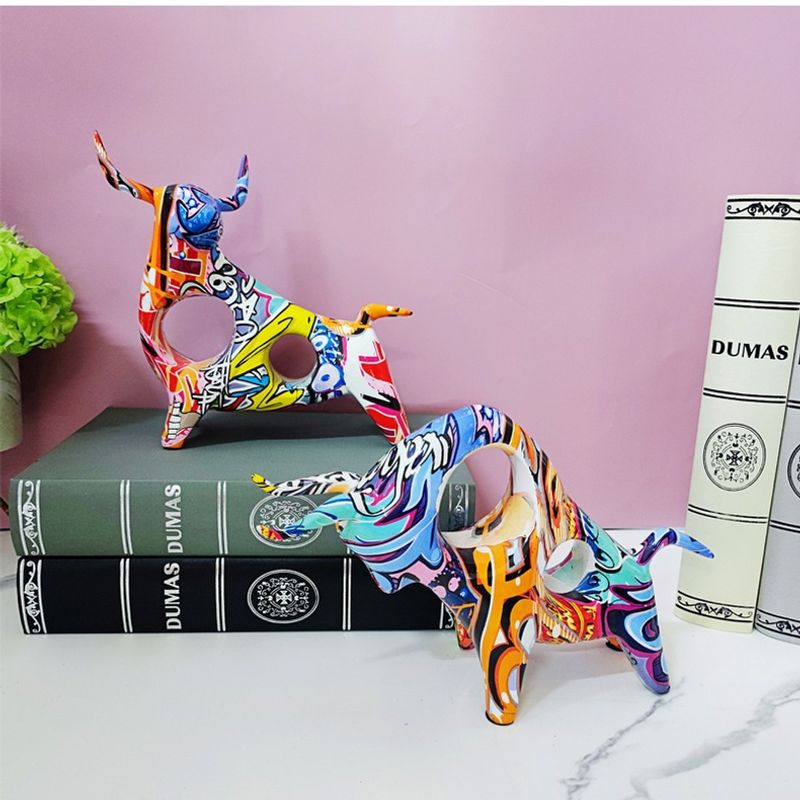 Light Luxury Colorful Lucky Cow Desktop Decoration Ornaments Black Bow