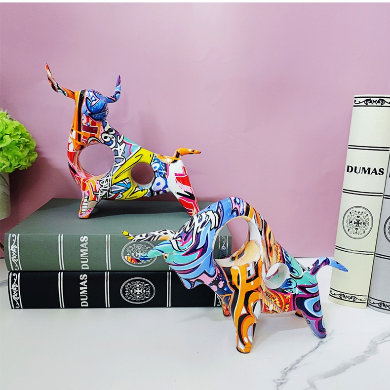 Light Luxury Colorful Lucky Cow Desktop Decoration Ornaments Black Head up