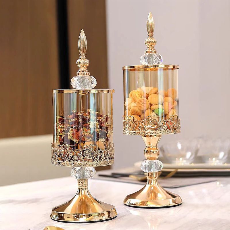 Light Luxury Crystal Glass Storage Jar With Lid European And American Living Room Coffee Table Lace Candy Jar Storage Ornaments