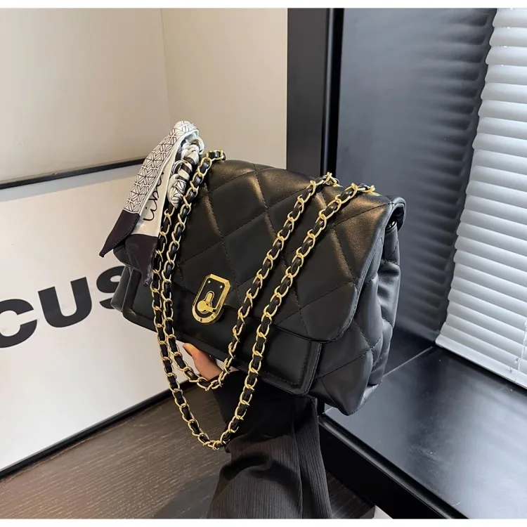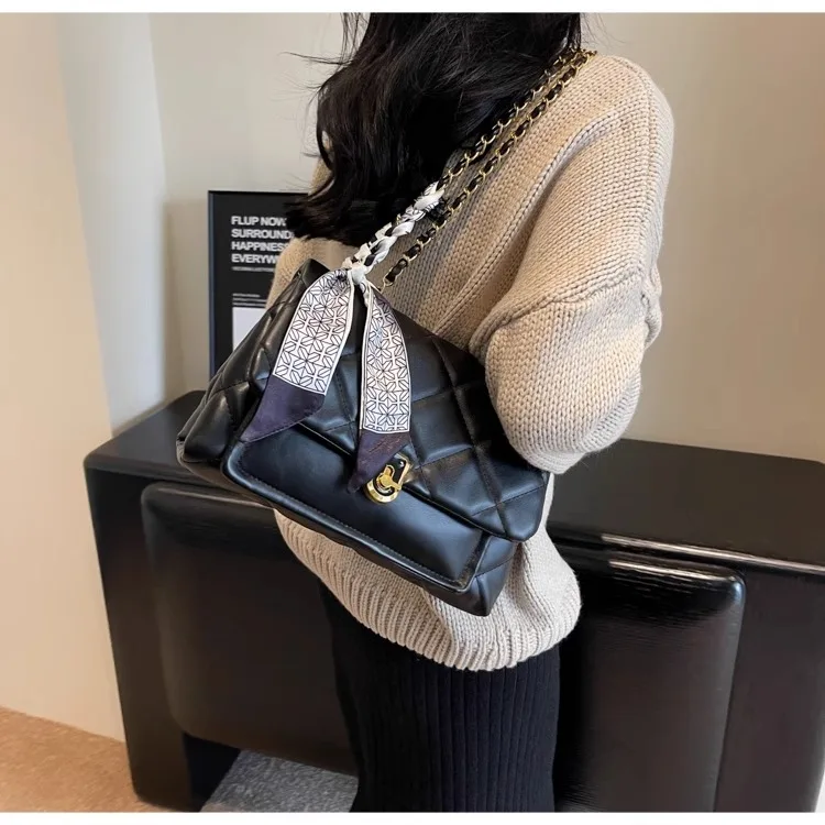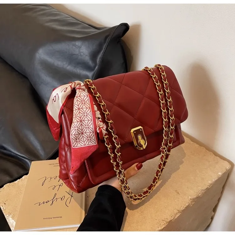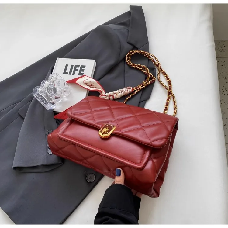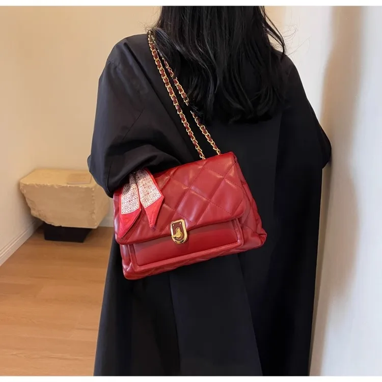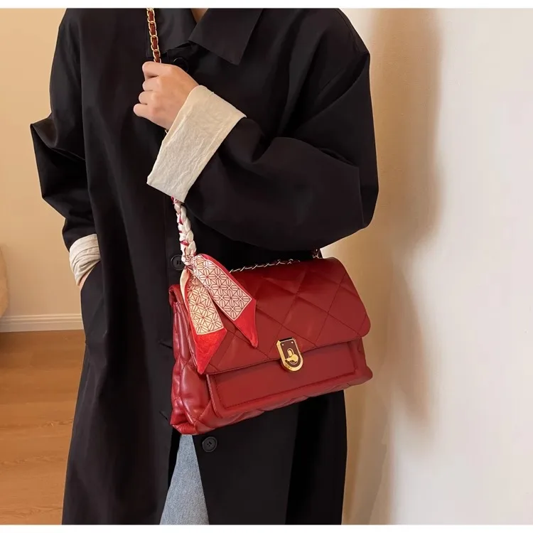 Light Luxury Elegant Red Plaid Chains Shoulder Bag High Quality Fashion Girls New Crossbody Bag Large Capacity Commuter Bag