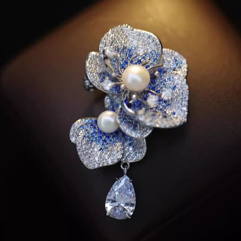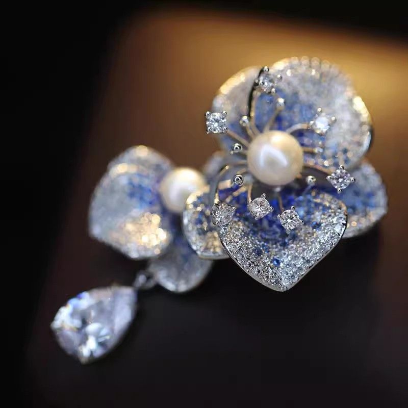 Light Luxury Elegant Zircon Pearl Flower Phalaenopsis Brooch For Women Fashion Sweet Crystal Jewelry Geometry Jewelry Gifts