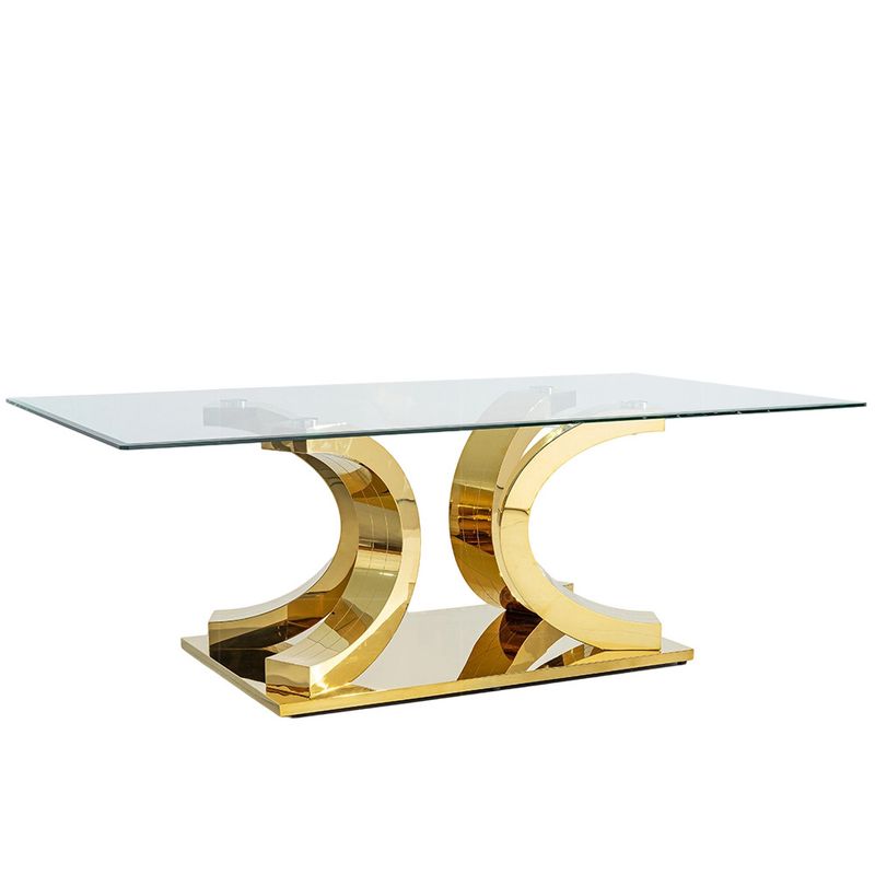 Light luxury glass dining table and chairs household high-end rectangular luxury 8-person dining table stainless steel