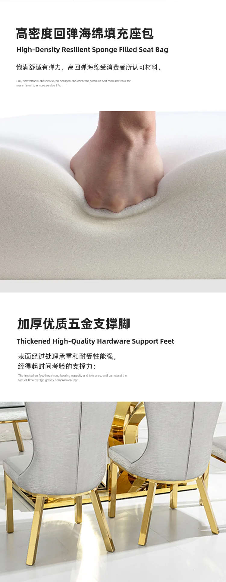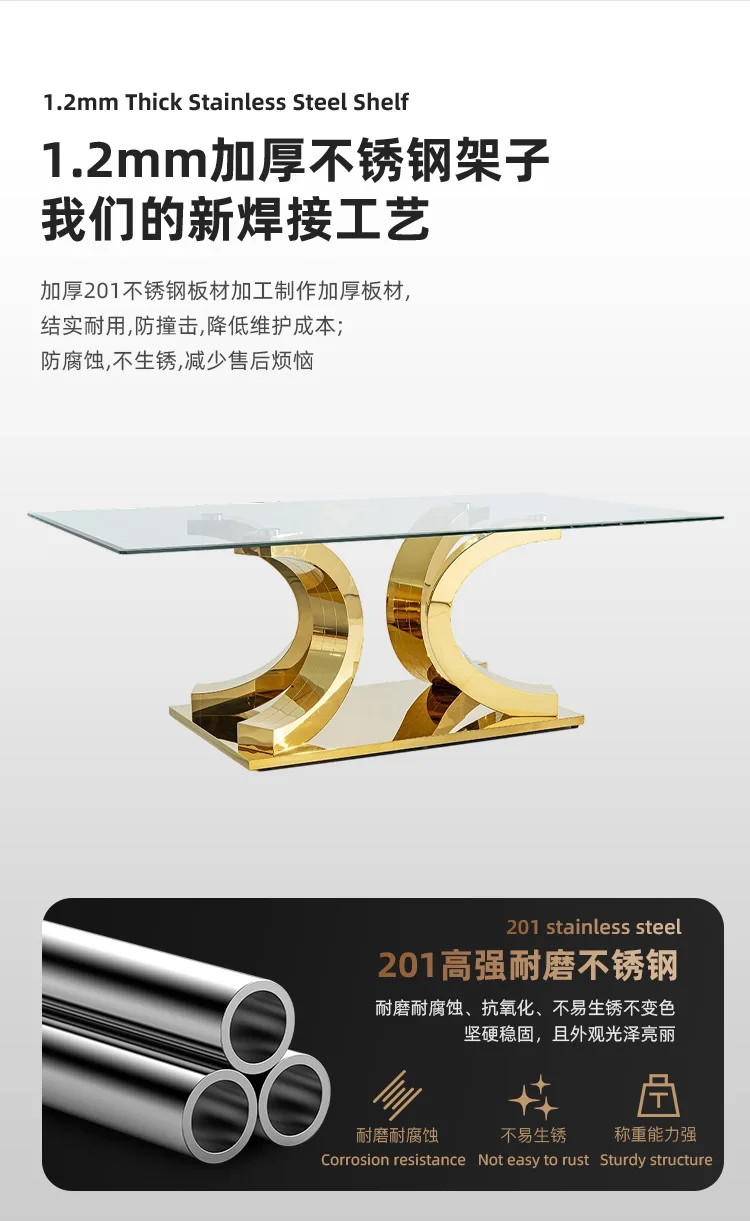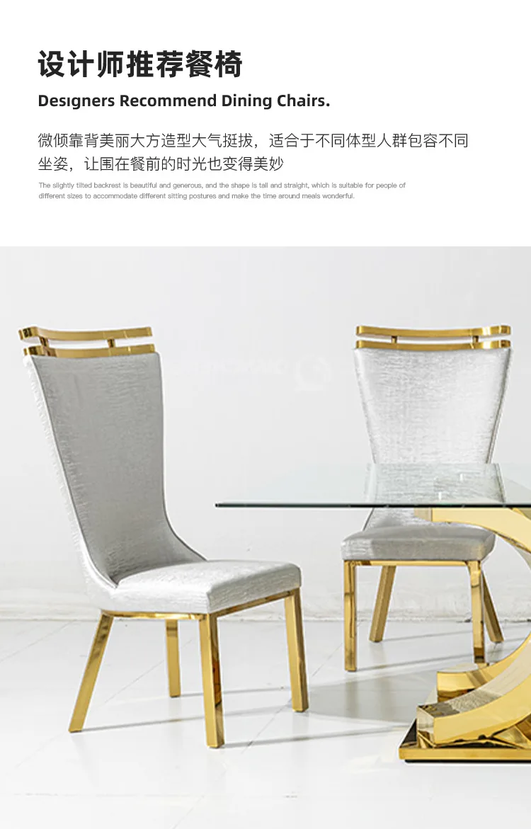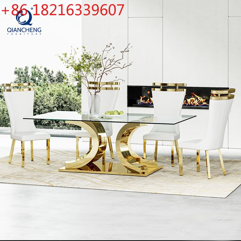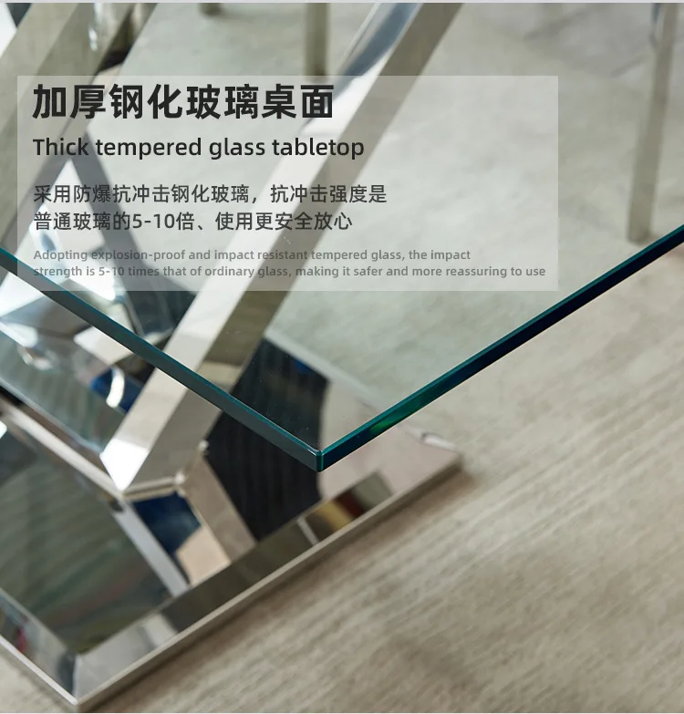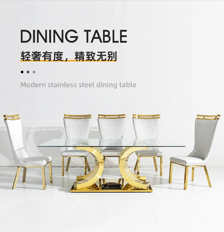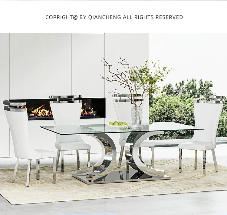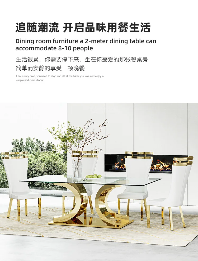 Light luxury glass dining table and chairs household high-end rectangular luxury 8-person dining table stainless steel