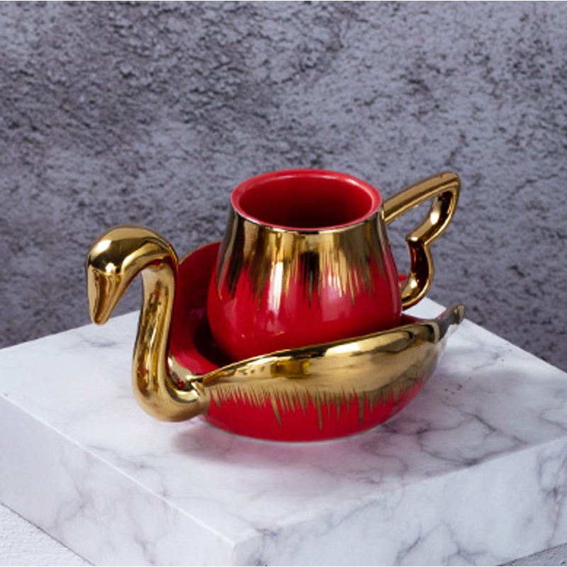 Light Luxury Gold Swan Shape Coffee Set Suit Red 100ml