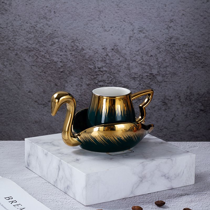 Light Luxury Gold Swan Shape Coffee Set Suit White 100ml