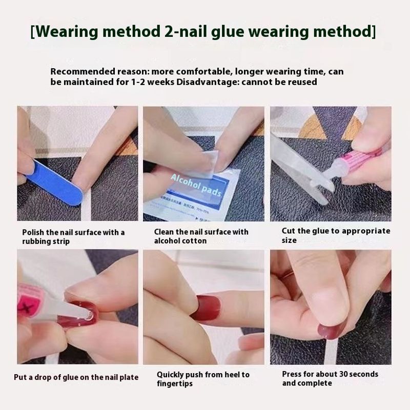 Nail enhancement sheet * 10+Jelly glue * 1+Glue * 1+Rubbing strip * 1+Alcohol cotton sheet * 1+Small wooden stick * 1